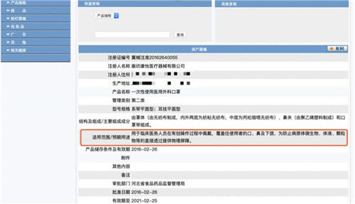 消费者购买医用口罩时,想知道企业生产信息、批准文号等可以在国家药品监督管理局官网进行查询。点击“医疗器械”“国产器械”,输入要查询的企业名称展鹏配资,就可以查询口罩详细信息。