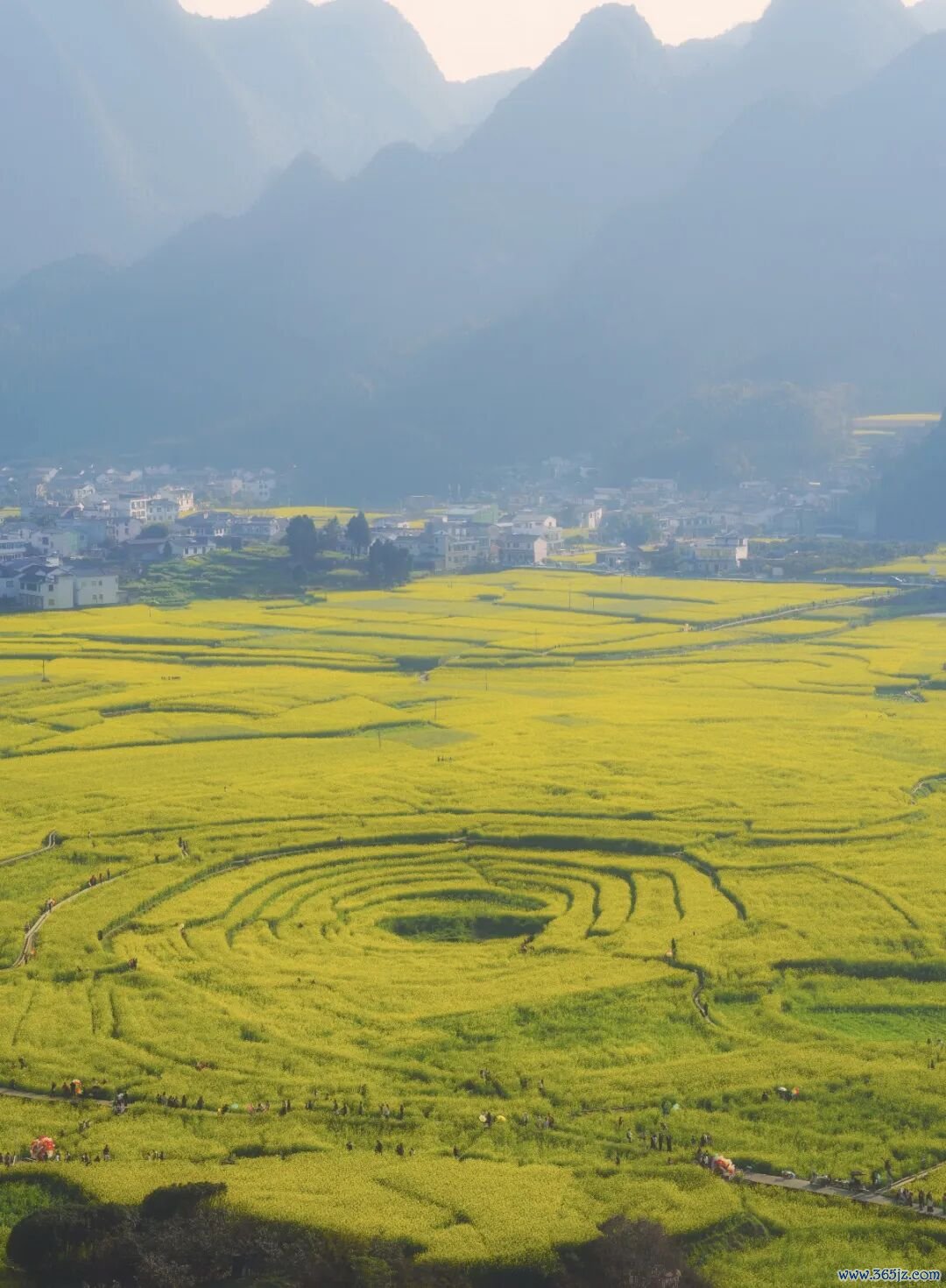 八卦田、福字田等独特的地貌景观,在金色的花海中勾勒出大地的艺术纹理,每一处细节都透着自然与人文的巧妙融合。