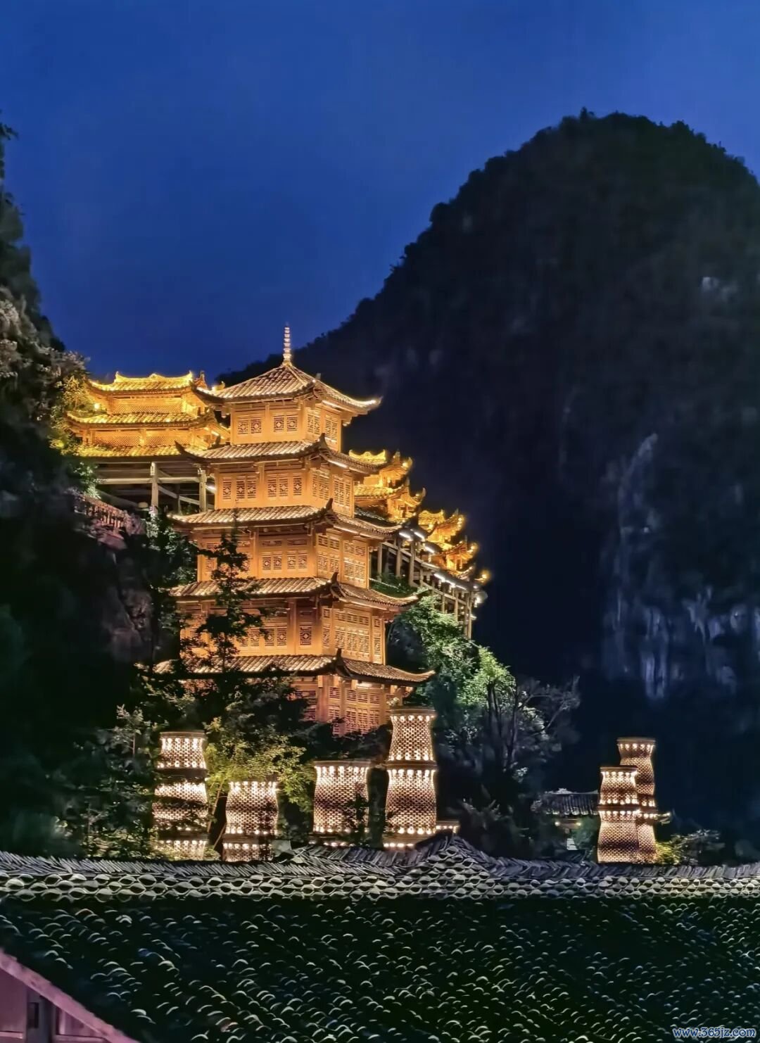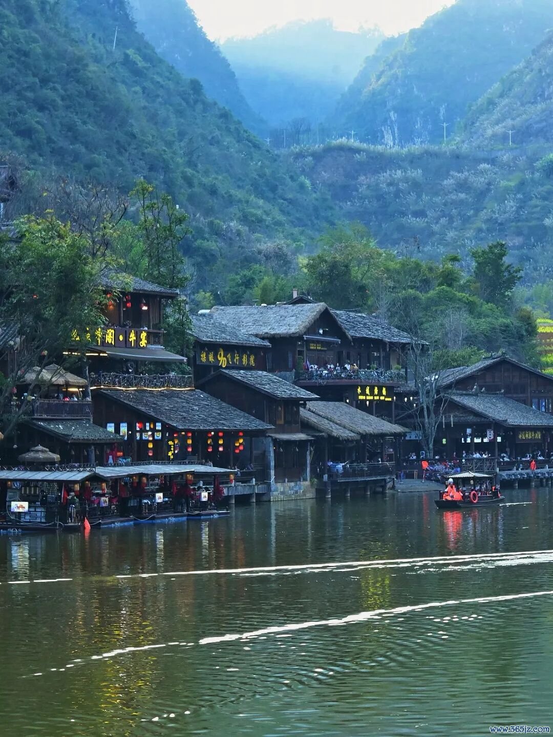 当你乘船泛舟湖上,远远望去,那座“中国天鹅堡”在碧波与青山的映衬下,宛如现实版的魔法世界,美得不似人间所有。尤其是在航拍镜头下,城堡、湖水、峰林交相辉映,构成了一幅梦幻般的画面,让人流连忘返。