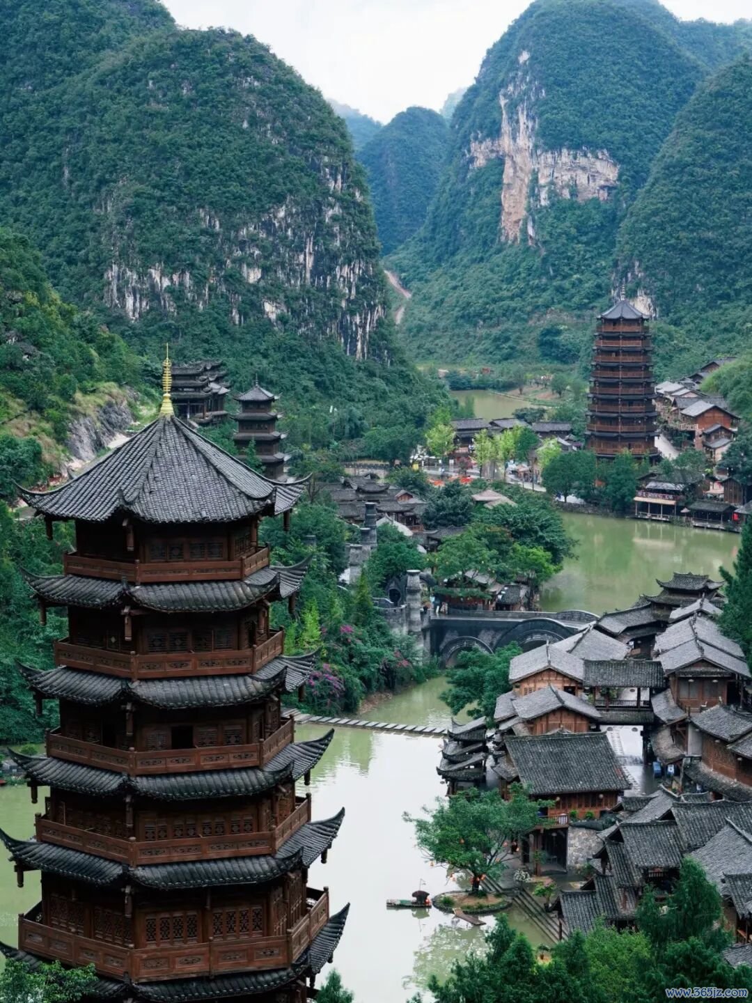 两万座巍峨的喀斯特峰林,是天然的画框;
