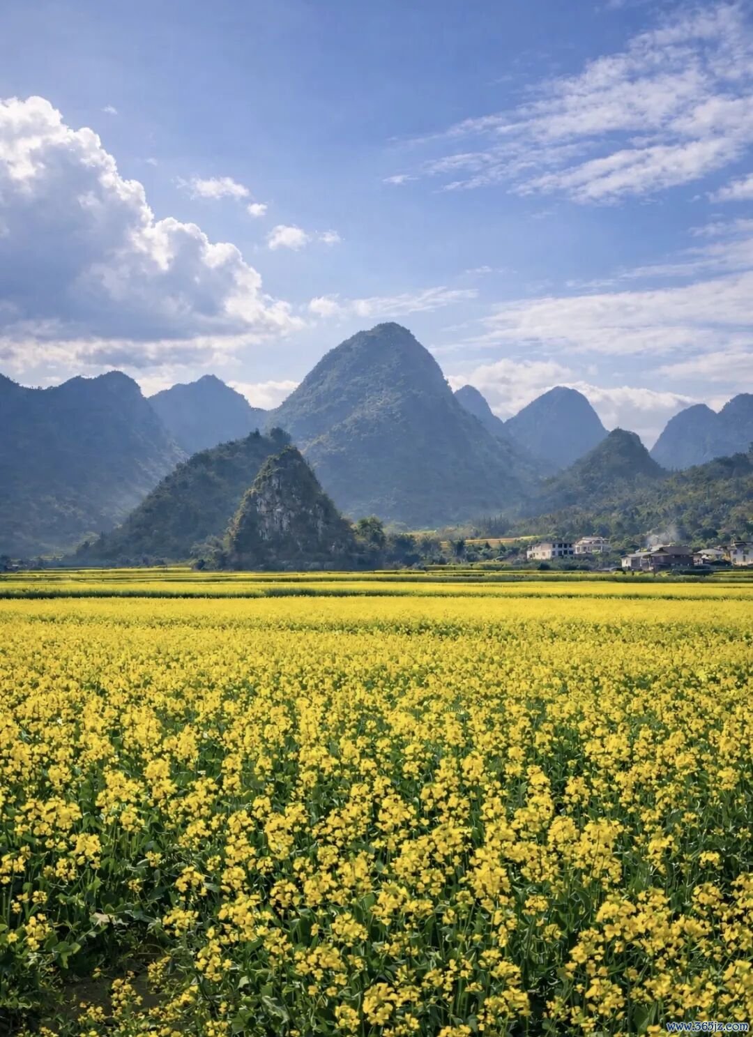 全国最早盛开的油菜花海,是这幅画卷的底色;